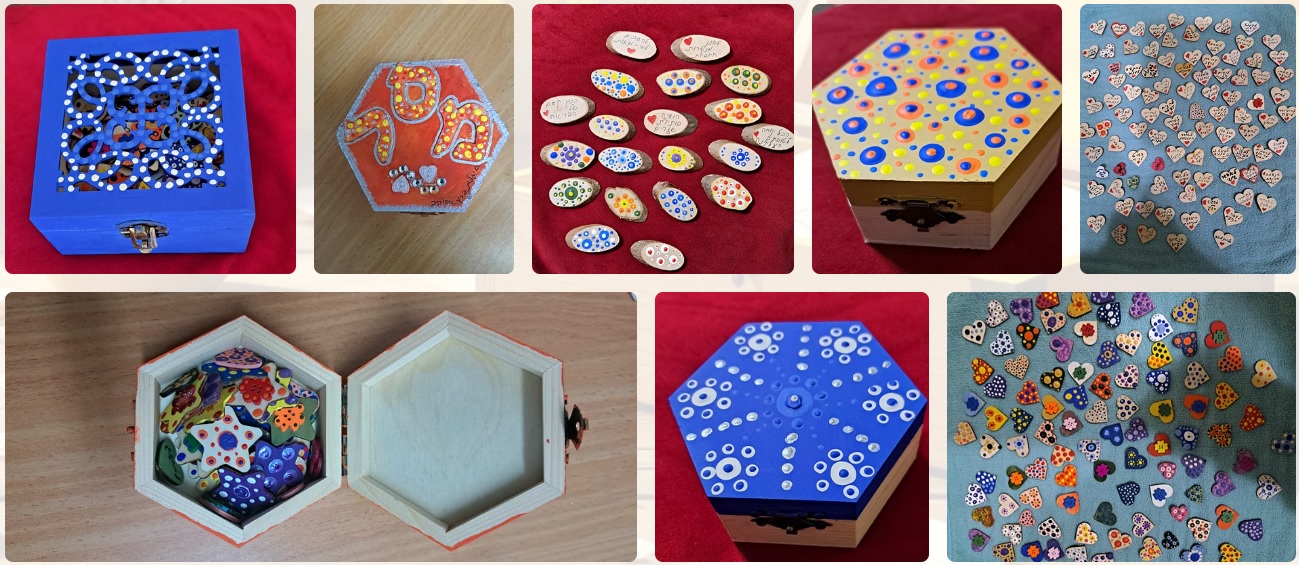 קופסאות עץ מיוחדות, עבודת יד, כל קופסה היא יחידה במינה – אין שתיים זהות כל קופסה מלאה במסרים קסומים ויצירתיים. . פשוט שולפים מסר — במודע או בלא מודע — ובודקים היכן הוא פוגש אותנו ברגע הזה. אין כללים. אין תשובות נכונות. יש רק את הרגע, המסר. ערכת מתנה לנפש, כלי עדין לחיבור עצמי — מושלם לשימוש יומיומי, לרגעי עצירה, ולהפתעות קטנות שמשנות את היום,